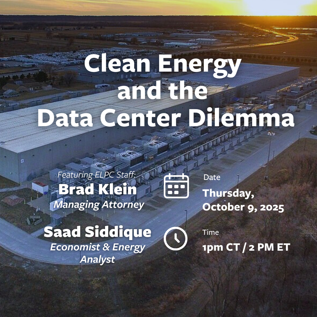 See full detailsData centers have arrived in the Midwest. Will the AI boom derail – or drive – our clean energy goals? Watch ELPC experts Brad Klein and Saad Siddique join Karsten Neumeister to discuss the Midwest data center landscape, its impact on our clean energy goals, and what utilities, communities, and policymakers can do to keep the Midwest on track for a clean energy future.
